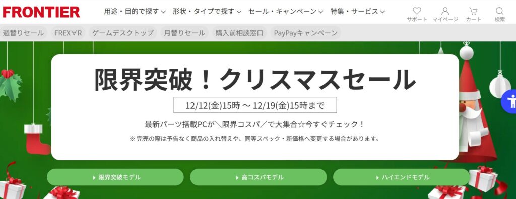 - フロンティア:限界突破!クリスマスセール