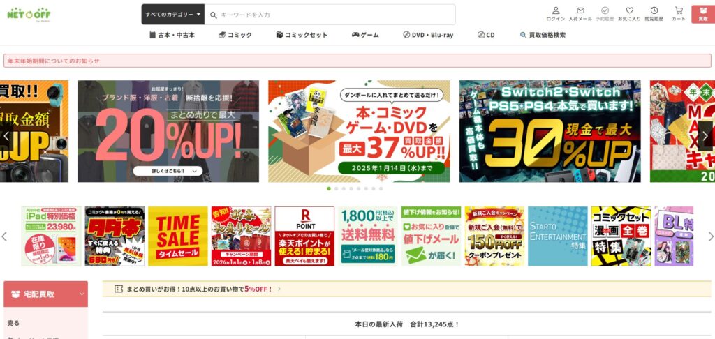 ネットオフは、ゲームだけでなく本・漫画・CD・DVD・ブルーレイなど幅広いジャンルの商品をまとめて買取できる総合買取サービスです。